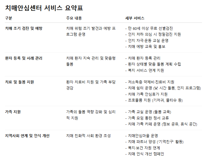 이러한 종합적 접근 방식은 치매 중증화 억제와 사회적 비용 절감에 큰 기여를 하고 있으며, 치매가 두렵지 않은 사회를 만들어가는 핵심 인프라라 할 수 있습니다.