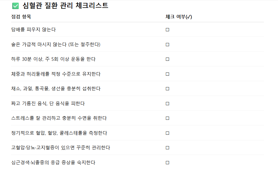 심혈관 질환은 예방이 최선이며, 생활습관 관리만으로도 발병 위험을 크게 낮출 수 있습니다.