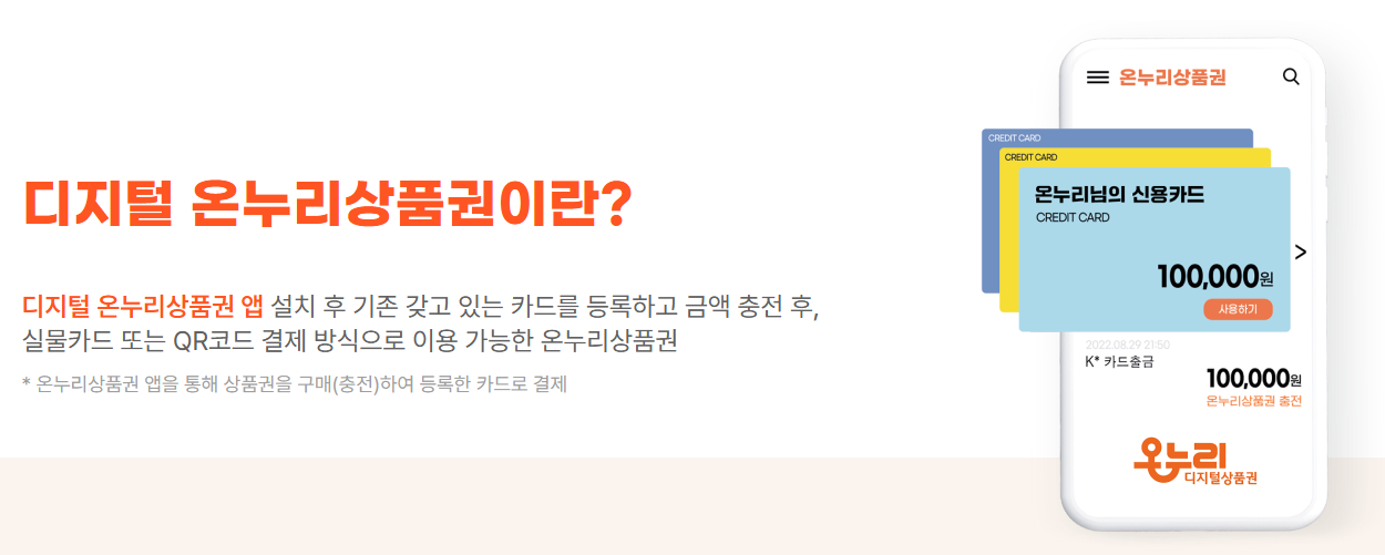 사용 방법도 간단합니다. 앱을 설치한 뒤 원하는 결제 수단(카드 또는 계좌)을 등록하고, 상품권 금액을 충전한 후 결제 시 카드 결제 또는 QR 결제를 선택하면 됩니다.